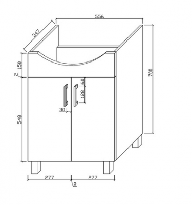 Avalon 750 Free Standing White poly 2 pack 45° finger pull Soft closing (2 Draw) Kickers or legs Dimensions: Width: 880mm