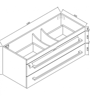 Indi 1200 Free Standing 2 Drawers M Handles Soft close runner Dimensions: Width: 1180mm Height: 750mm Depth: 455mm