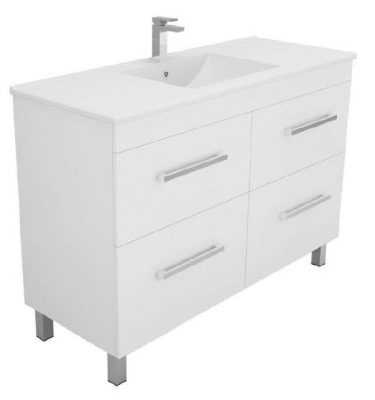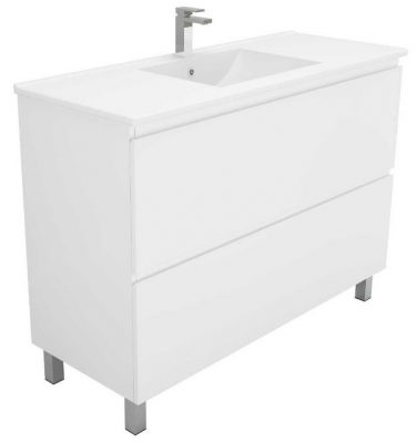 Avalon 1200 Free Standing White poly 2 pack 45° finger pull Soft closing (4 Draw) Kickers or legs Dimensions: Width